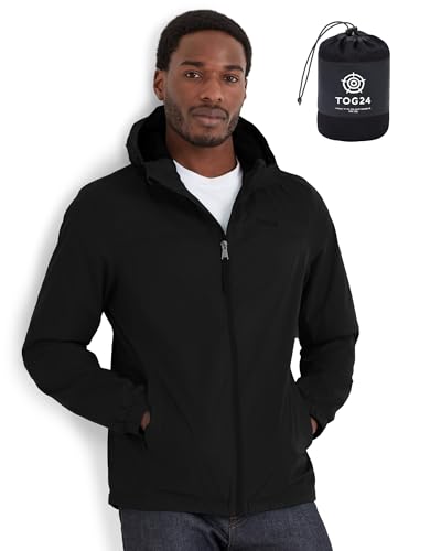 TOG24 Craven Mens Waterproof Packaway Jacket with Bag, Full Length Zip and Adjustable Hood, Breathable, Windproof