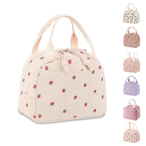 Lunch Bags for Women, Insulated Packed Lunch Bag, Cute Corduroy Cool Bag Lunch Box for Girls Adults Ladies, Reuseable Leakproof Shouder Stap Cooler Bag for Work School Picnic Travel (Khaki)