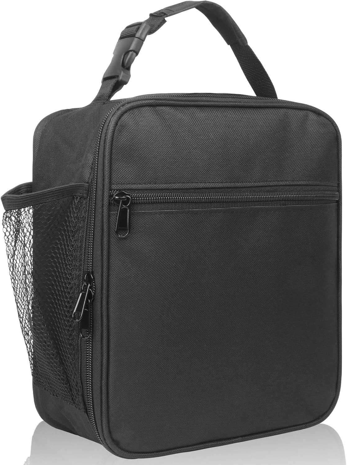 TIECHI Insulated Lunch Bag with Side Mesh Pocket, Thermal Packed Lunch Box for Adults/Kids/Men/Women, Water-Resistant Leakproof Cool Bag for Work/School/Picnic/Outdoor(Black)