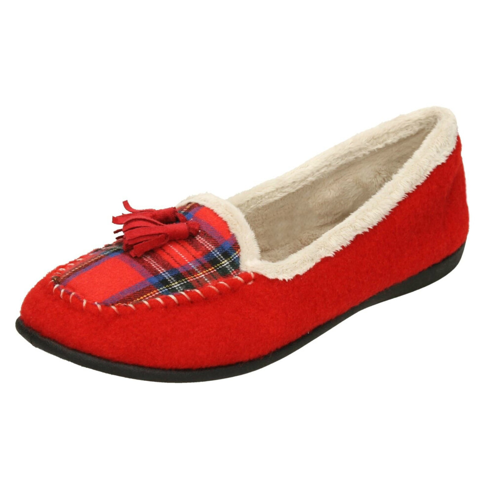 (UK 4, Red Combi (Red)) Ladies Padders Slip On Slipper Shoes Tassel