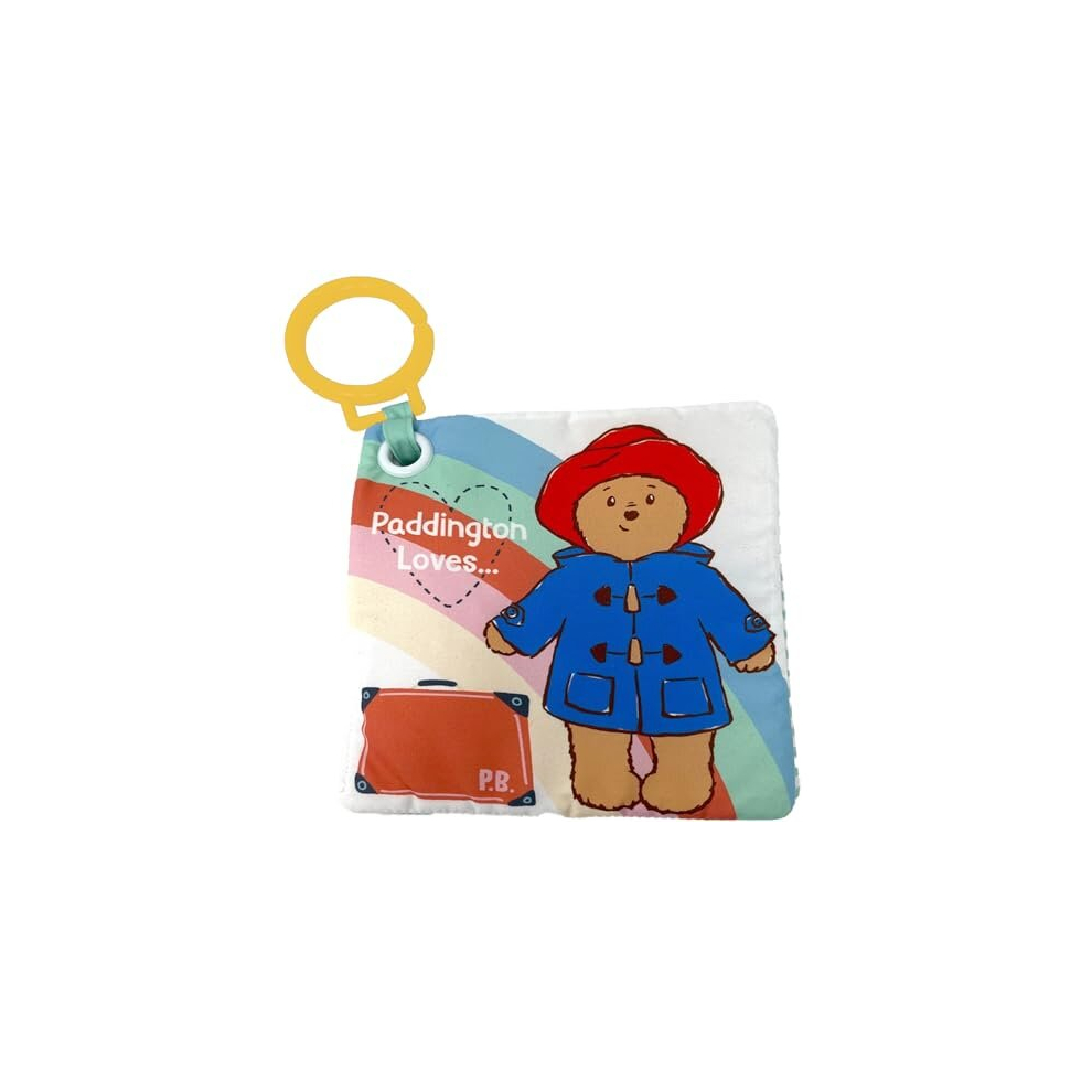 Rainbow Designs Paddington Bear Baby Cloth Book – Touch and Feel Play & Go Square Book for Babies - Colourful Soft Toy with Squeaky & Crinkly Pages – Sensory Pram Toy