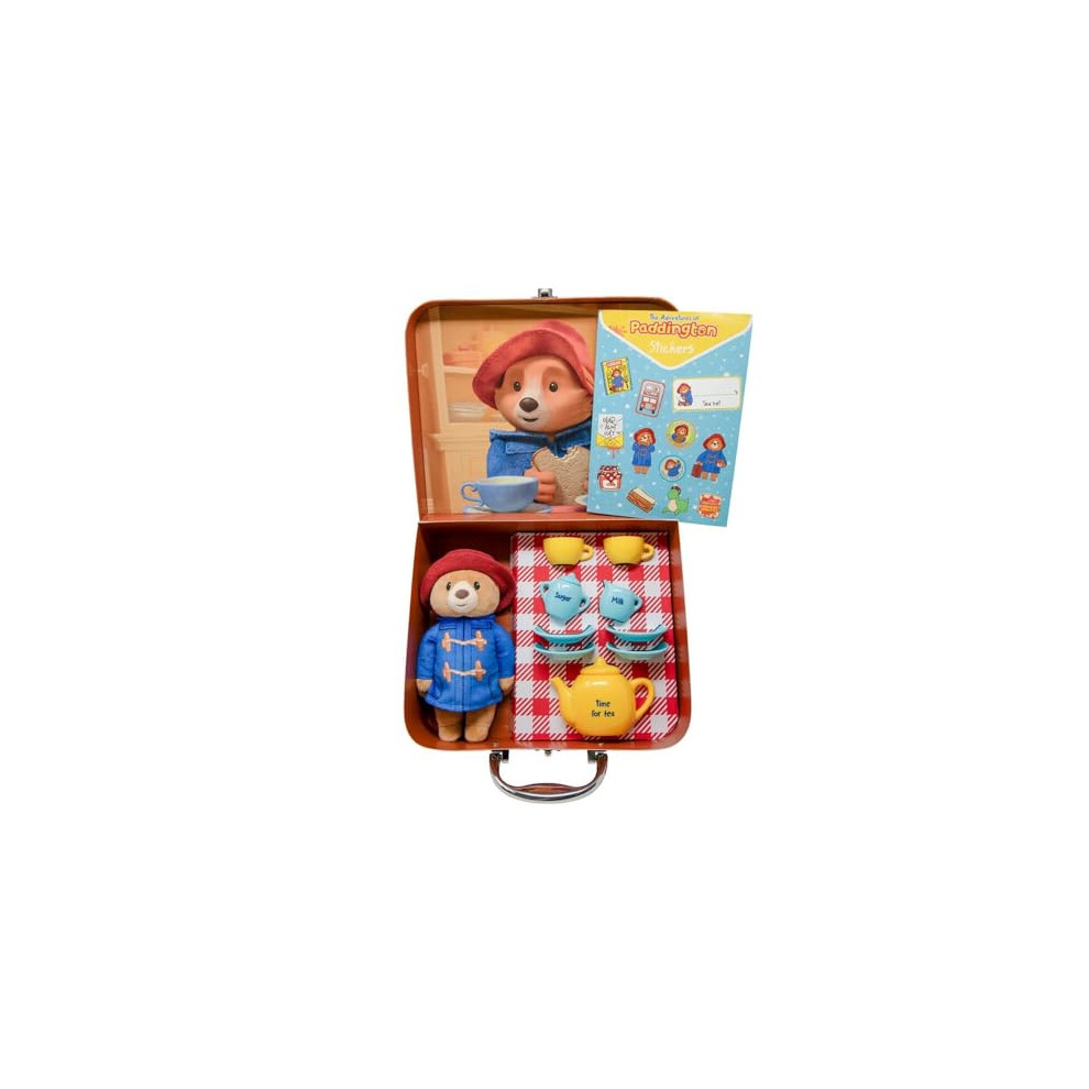 Rainbow Designs Paddington Bear's Toy Tea Set - 9-Piece Children's Tea Set with Teapot, Cups, Saucers & Sugar Pot - Features Cuddling Soft Toy, Reusable Suitcase & Sticker Sheet