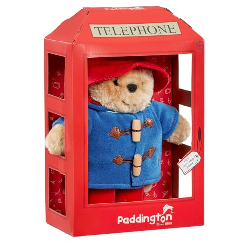 Rainbow Designs Paddington Bear Soft Toy in British Phone Box - Plush Teddy with Red Hat, Blue Duffle Coat & Wellington Boots - Collectable Stuffed Animal in Iconic Packaging