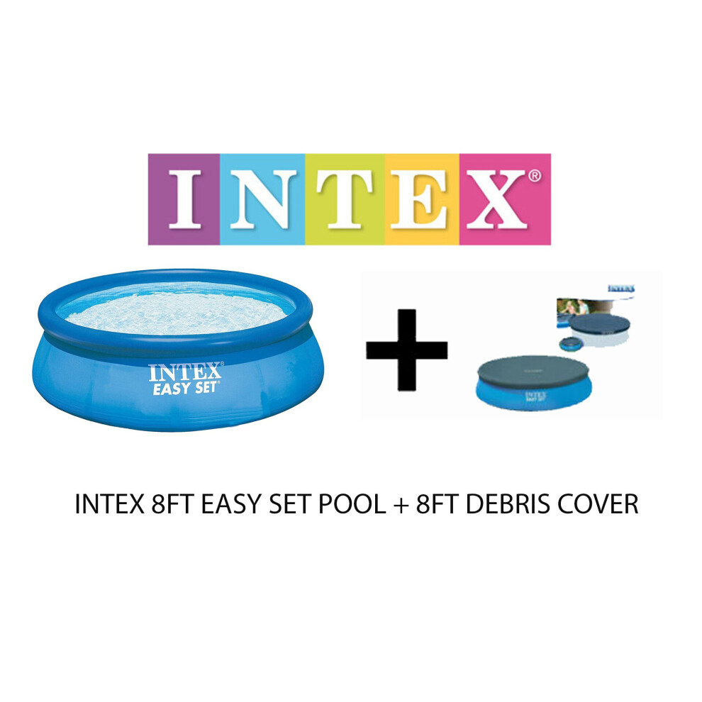 Intex 8ft x 24in Swimming Pool INFLATEABLE PADDLING ROUND & DEBRIS COVER 244CM