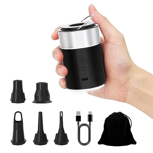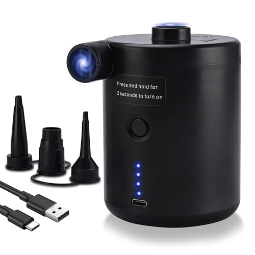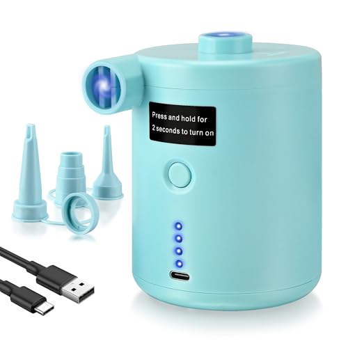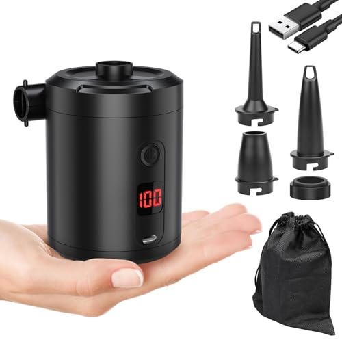 Portable Air Pump for Inflatables, USB-C Rechargeable Electric Mini Air Pump, Ultra-Fast Inflate Deflate for Paddling Pool Air Mattress Boats Swimming Pool Pumps with 5 Inflator Nozzles