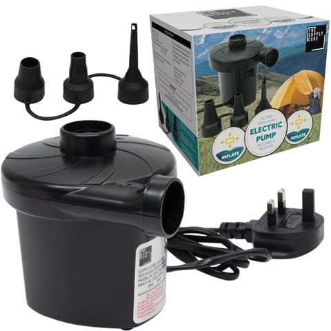 Supply Cube AC Electric Air pump with 3 Nozzles | AC 150w Air Pump | Portable Electric Pump | Quick-Fill Deflate & Inflate Pump for Paddling Pool, AirBed Pump, Swimming Pool Camping Accessories