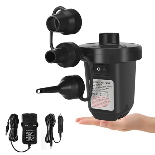 Electric Air Pump for Inflatable, Quick-Fill Air Pump/Blow Up for Air Mattress Air Bed Paddling Pool Swimming Ring,Inflatables Inflate Deflate Air Pump 3 Nozzles Home/Car Use,AC 12V 50W 2m