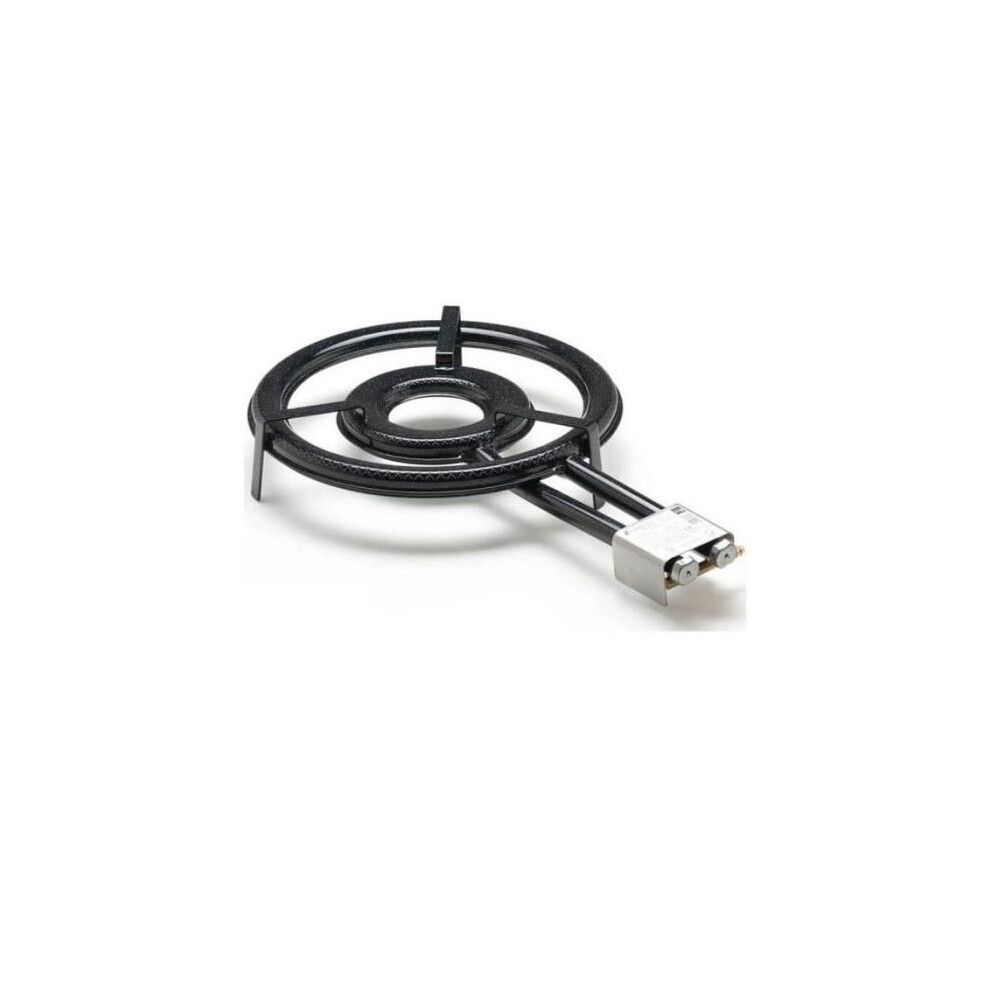 Double Ringed Gas Burner 400mm w/ Polished Steel Paella Pan 46cm & UK Adaptor