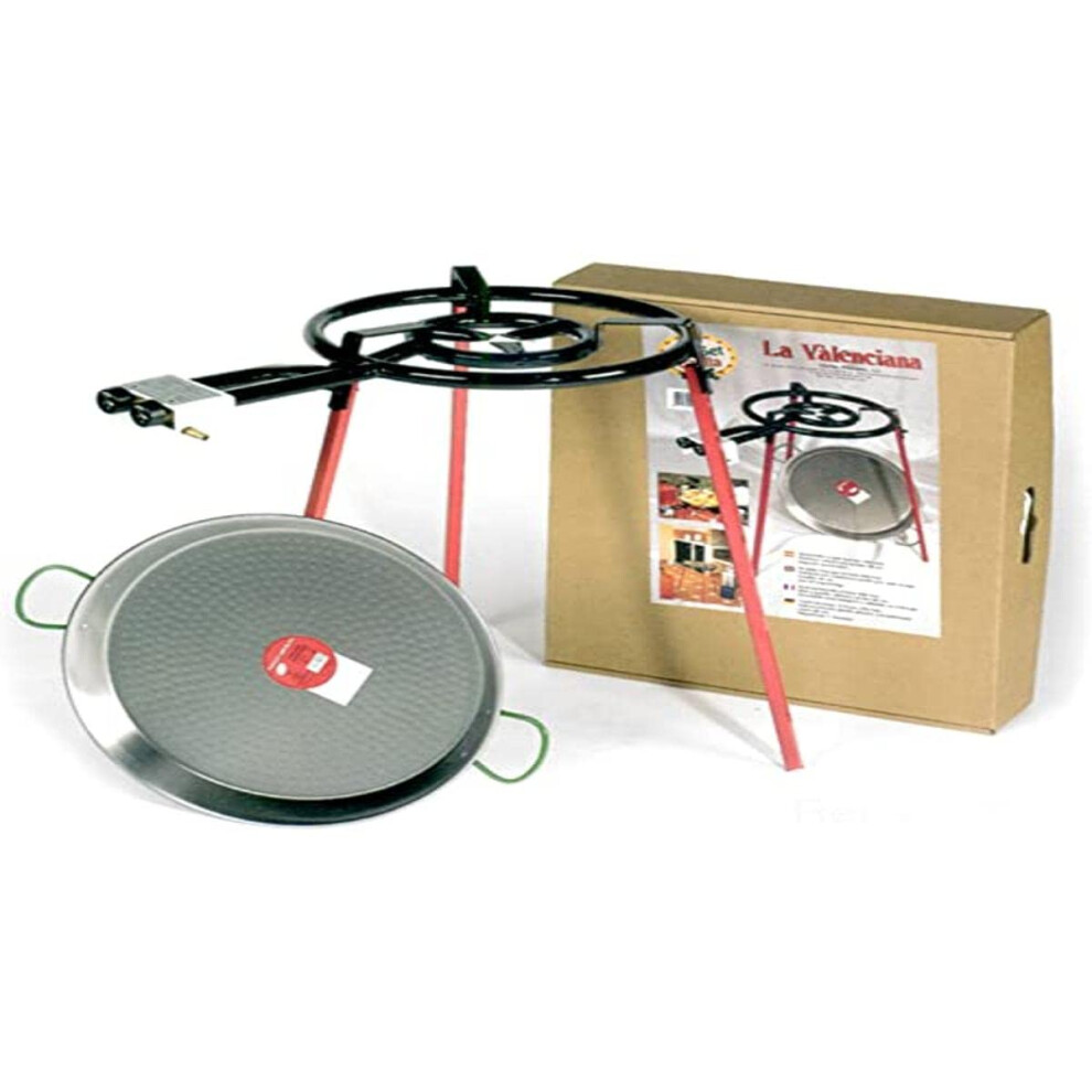 46cm Enamelled Paella Pan + 40cm 2 Ring Gas Burner + Butane Regulator + Legs Set