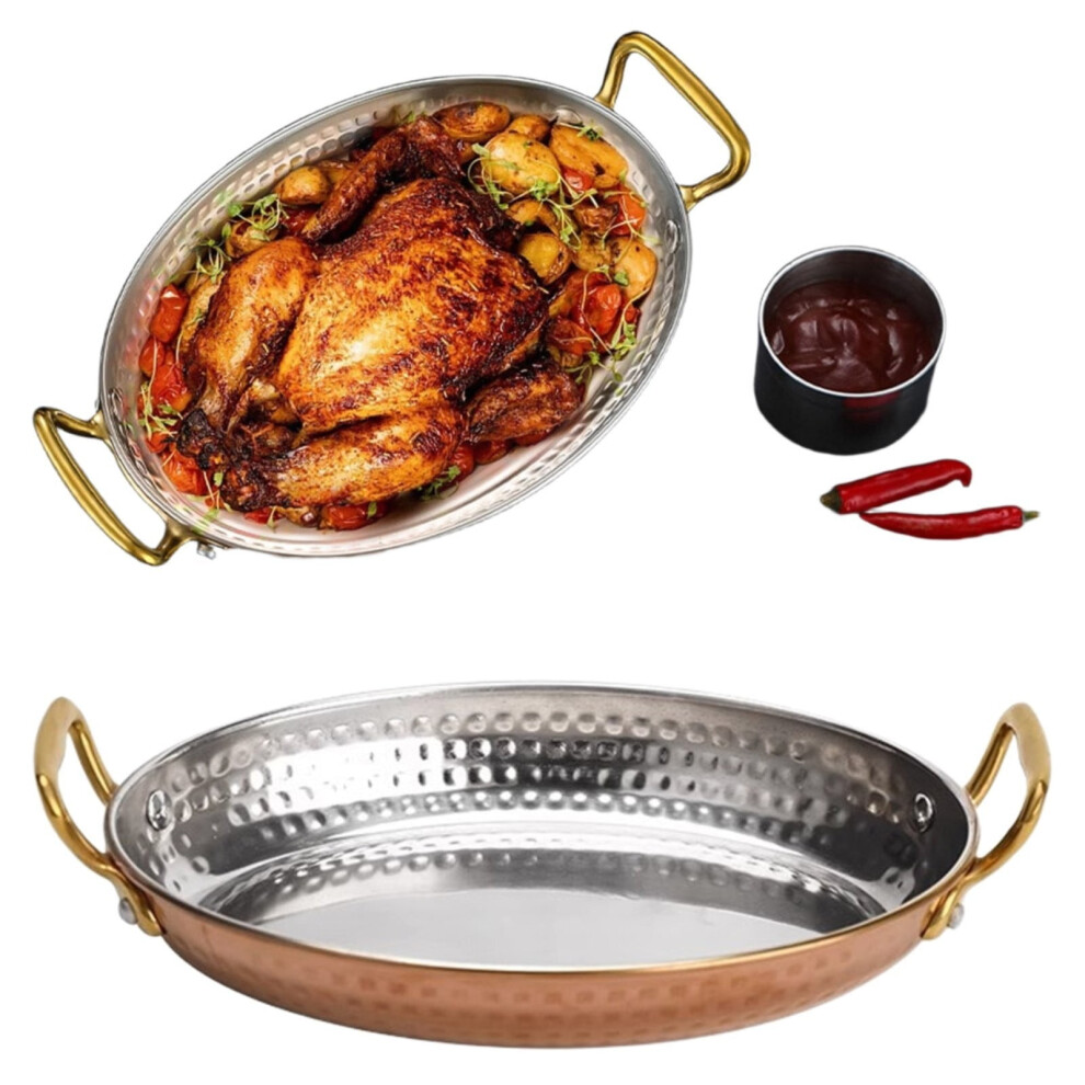 Copper Alicante Paella style Cookingï¼Serving Pan, Pure Copper, Heavy Gauge, Hand Hammered, Patented Stainless Steel Handles ï¼4.45*6.7*1.46Inï¼