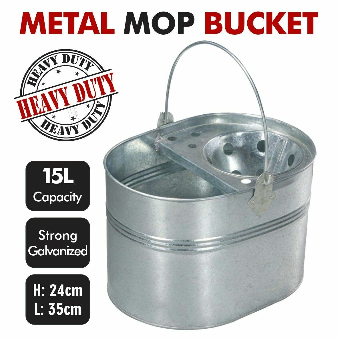 Vintage Galvanised Metal Pail Heavy Duty Mop Bucket 15L Durable Wringer Steel UK