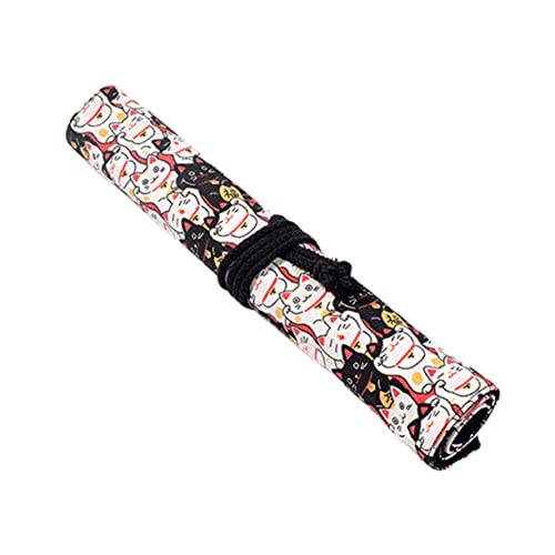 ROMISBABA Canvas Paint Brush Roll up Pencil Case with 20 Slots Cat Print Stationery Pouch for Artist Brush Storage Large Capacity Organizer for Office and School Supplies
