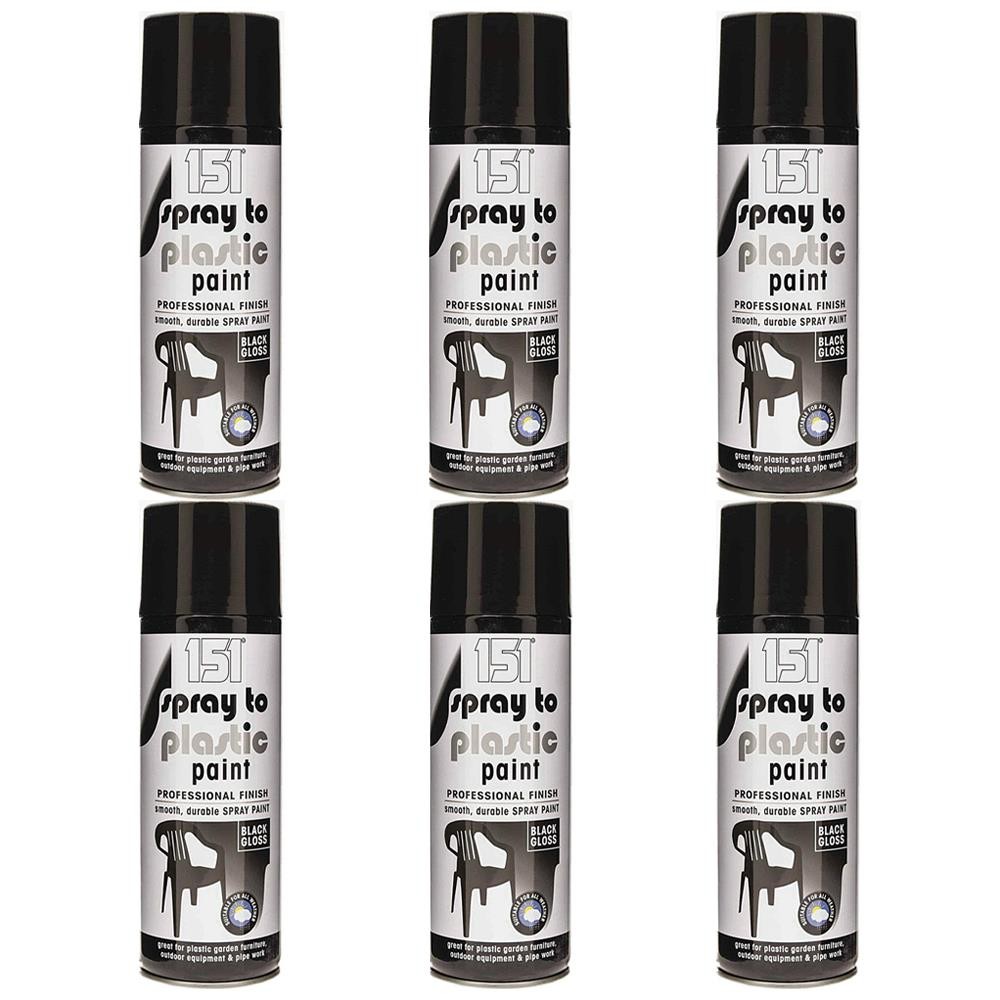 6x 151 Plastic Paint Black Gloss Spray Paint Aerosol Auto Multi-Purpose 400ml