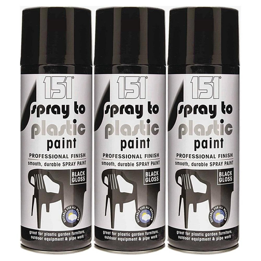 3x 151 Plastic Paint Black Gloss Spray Paint Aerosol Auto Multi-Purpose 400ml