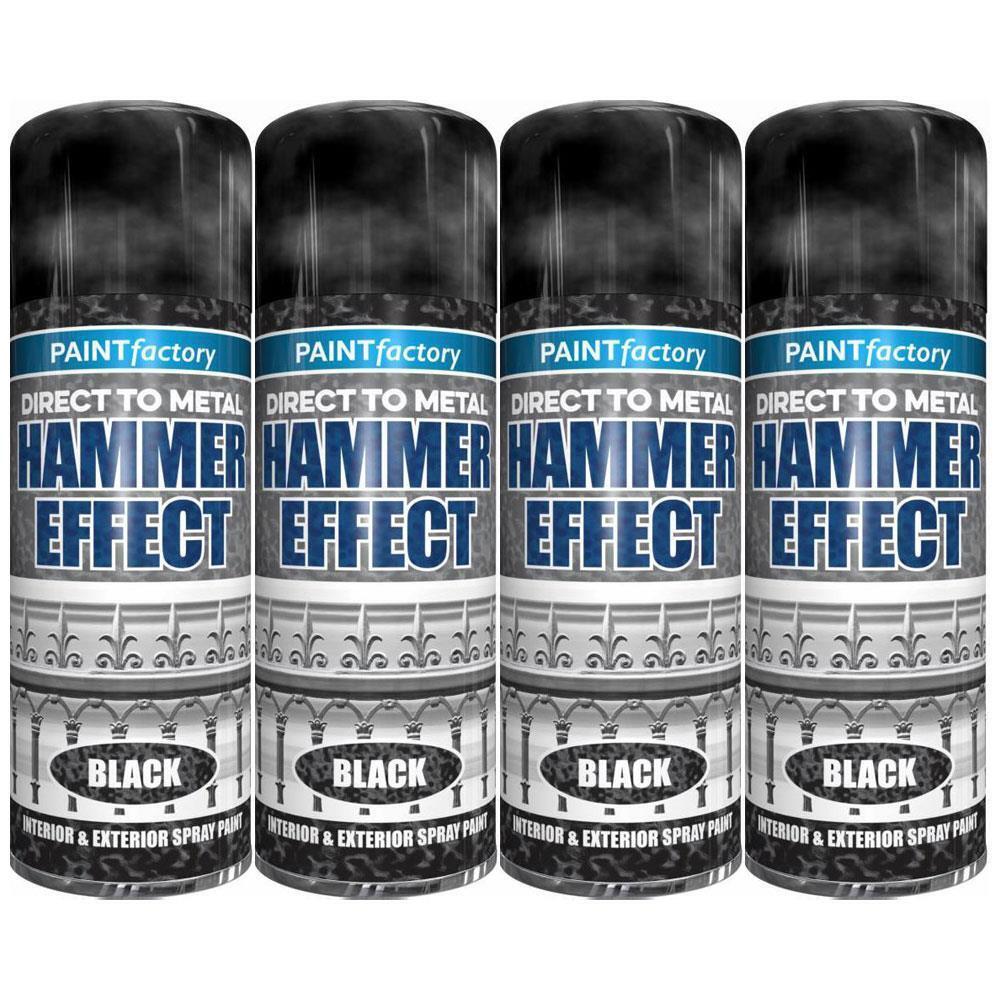 4X Black Hammer Effect Spray Paint Aerosol Auto Interior Exterior Metal 400ml