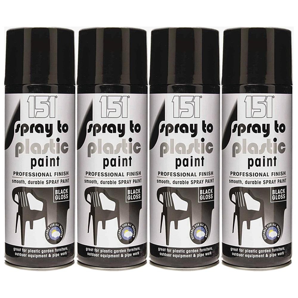 4x 151 Plastic Paint Black Gloss Spray Paint Aerosol Auto Multi-Purpose 400ml