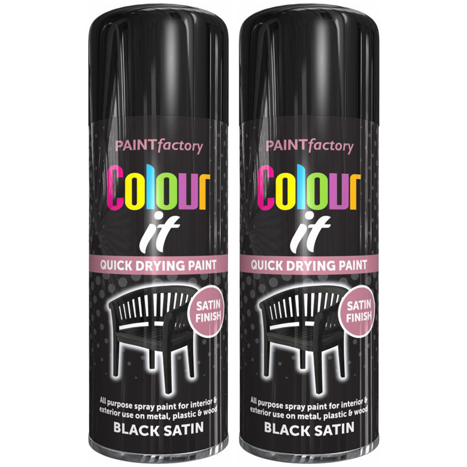2x COLOUR IT Black Satin Spray Paint Satin Finish Metal Plastic Wood 400ml