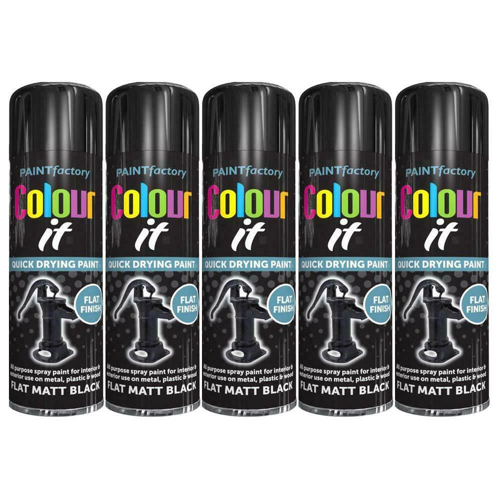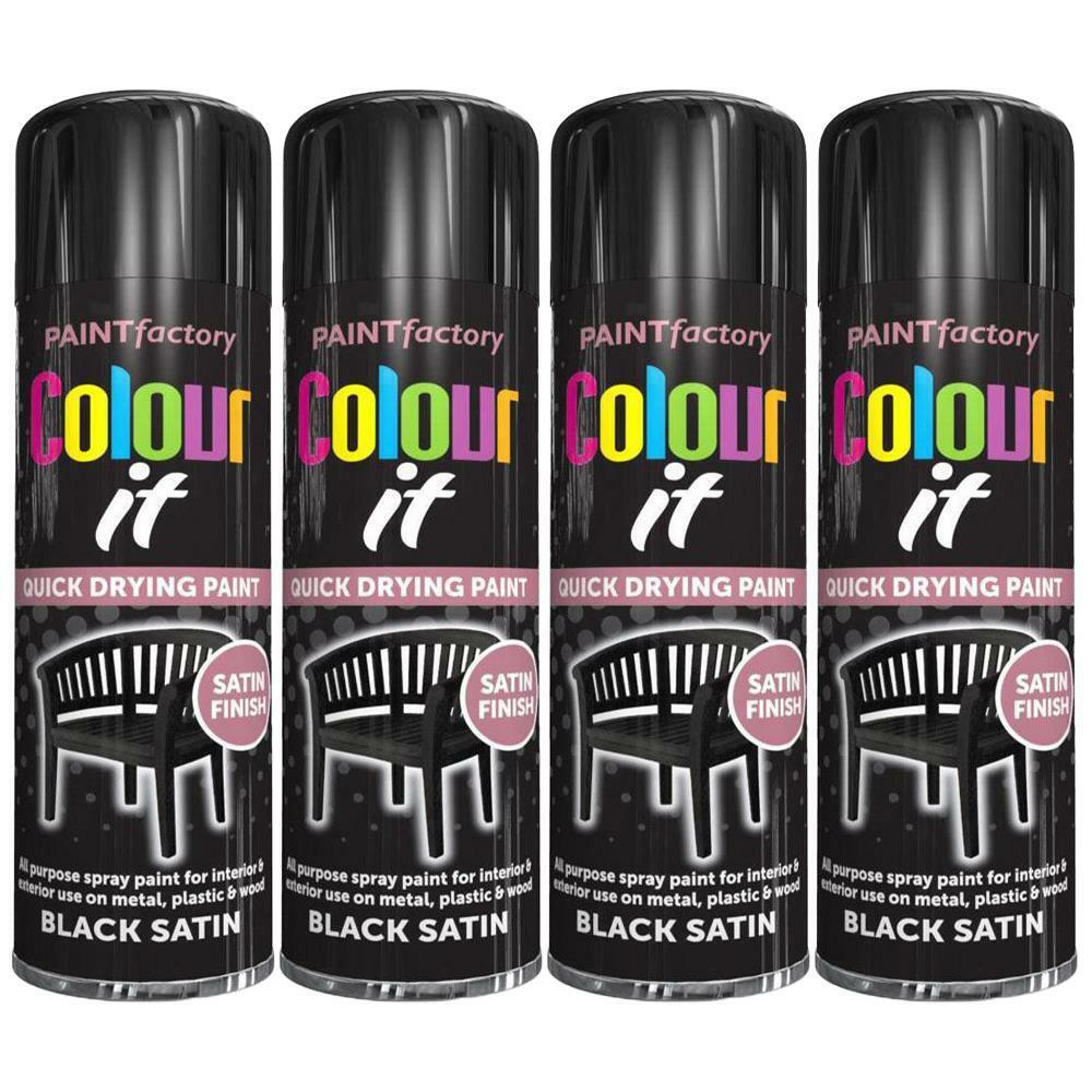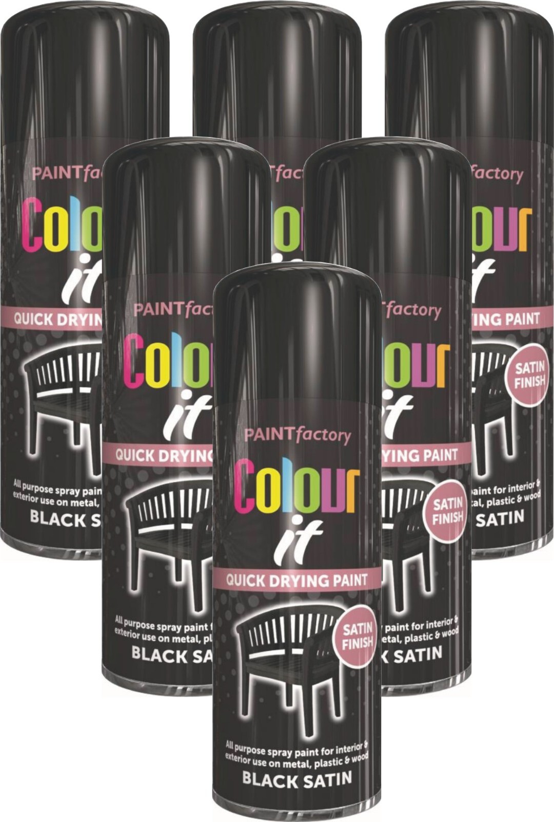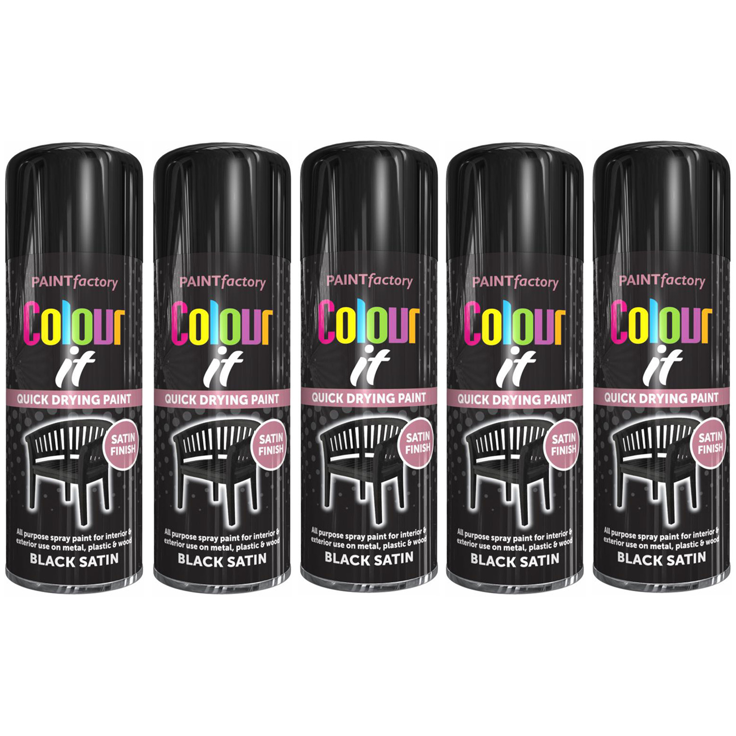 5x COLOUR IT Black Satin Spray Paint Satin Finish Metal Plastic Wood 400ml