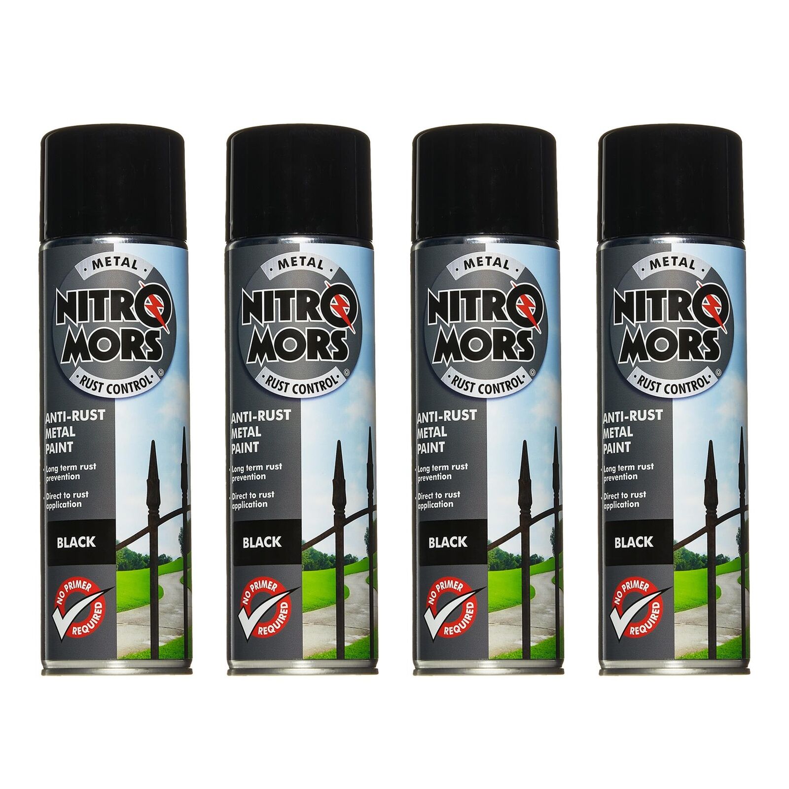 Nitromors Smooth Metal Finish Anti Rust Corrosion Black Paint Spray 500ml x4