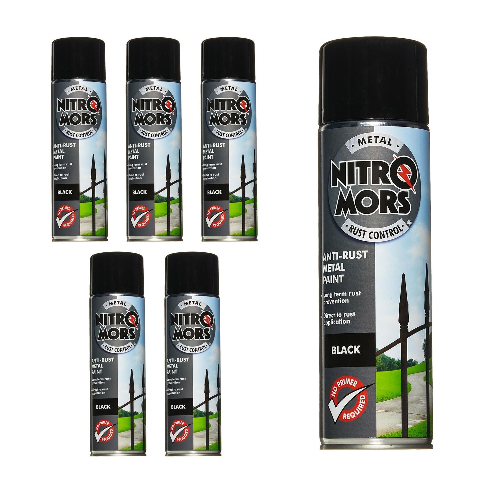 Nitromors Smooth Metal Finish Anti Rust Corrosion Black Paint Spray 500ml x6