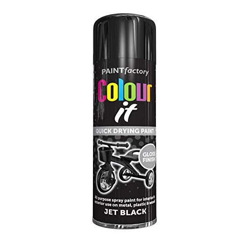 COLOUR IT Black Satin Spray Paint Primer Satin Finish Metal Plastic Wood 400ml