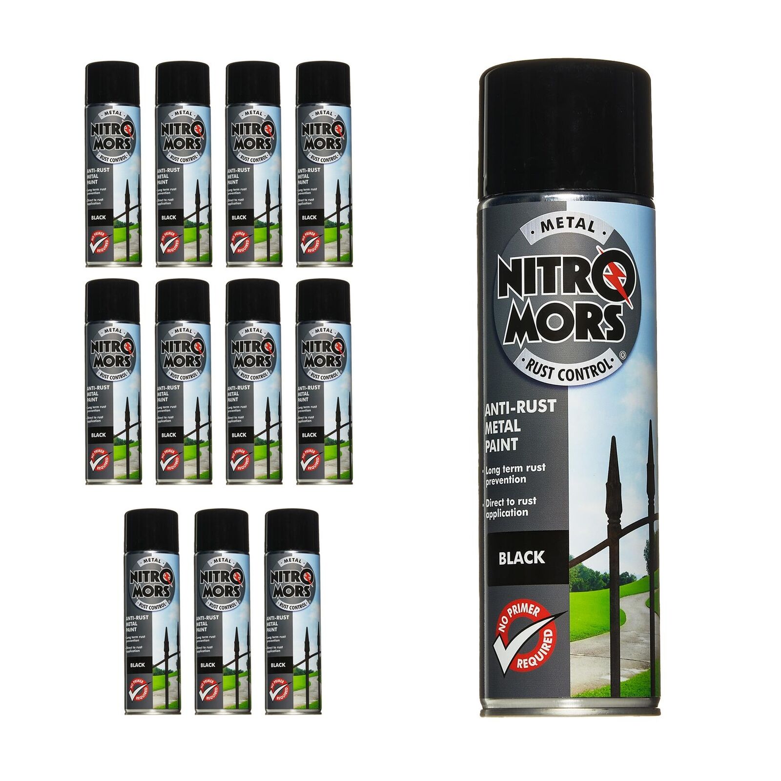 Nitromors Smooth Metal Finish Anti Rust Corrosion Black Paint Spray 500ml x12