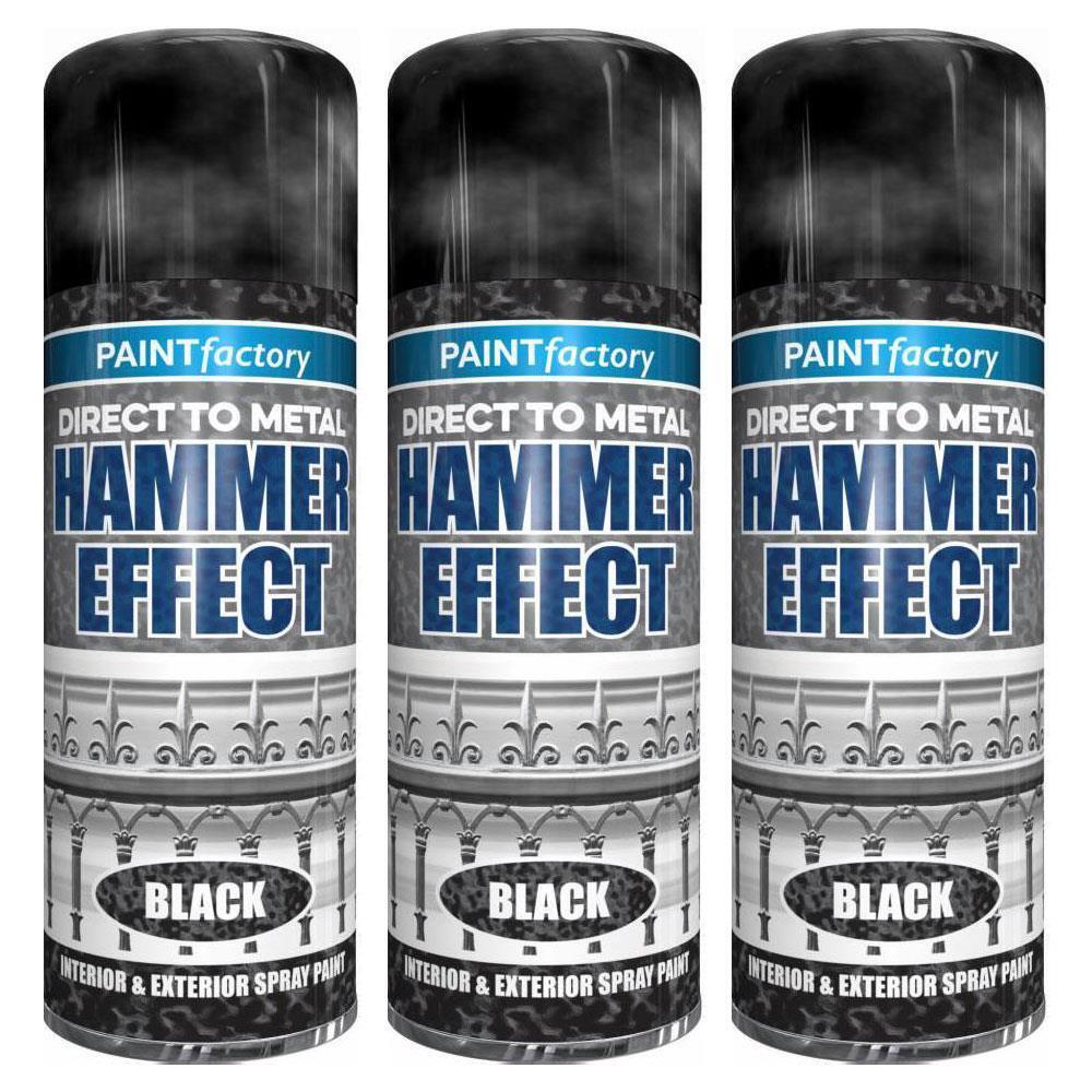 3X Black Hammer Effect Spray Paint Aerosol Auto Interior Exterior Metal 400ml