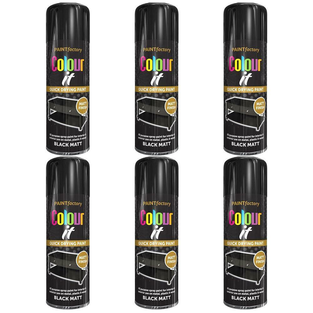 6X Black Matt Spray Paint Aerosol Auto Car Lacquer Wood Metal 400ml