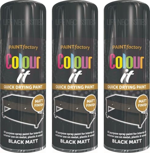 Paint Factory Matt Black Spray Paint - 3 x 400 ML, All-Purpose Aerosol for Metal & Wood