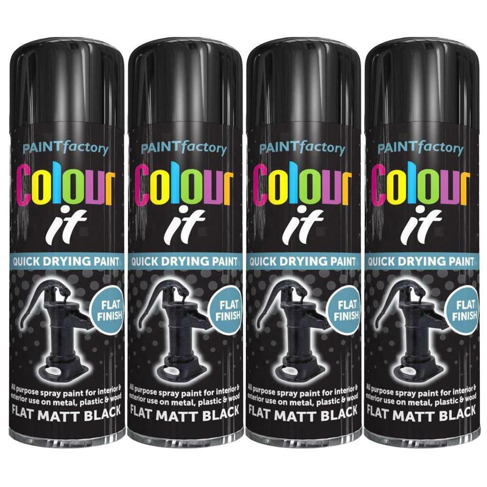 4X Flat Matt Black Spray Paint Aerosol Auto Car Lacquer Wood Metal 250ml