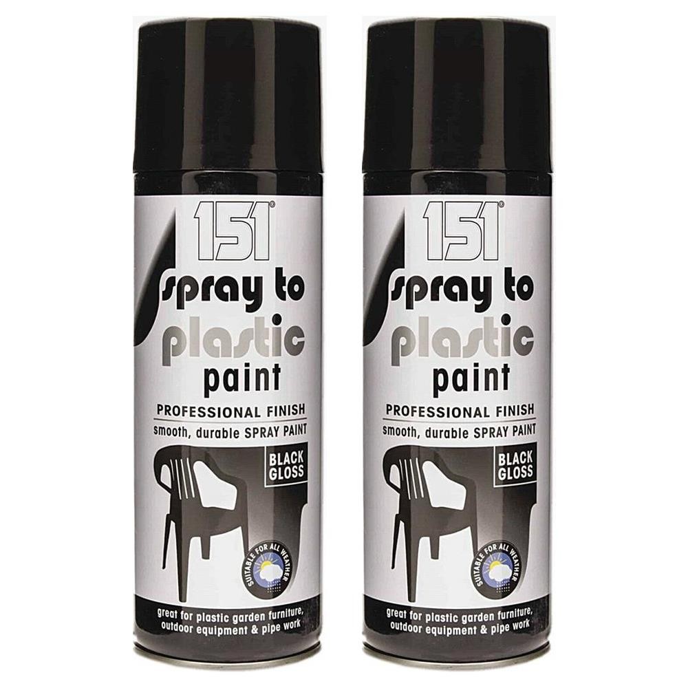 2x 151 Plastic Paint Black Gloss Spray Paint Aerosol Auto Multi-Purpose 400ml