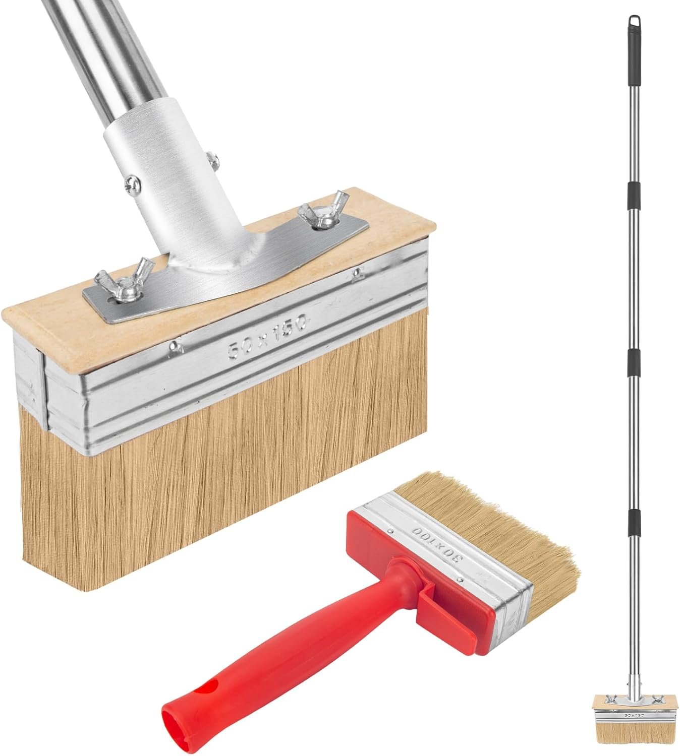 7" Decking Paint Brush Deck Stain Applicator with Long Handle, 3" Small Paint Br