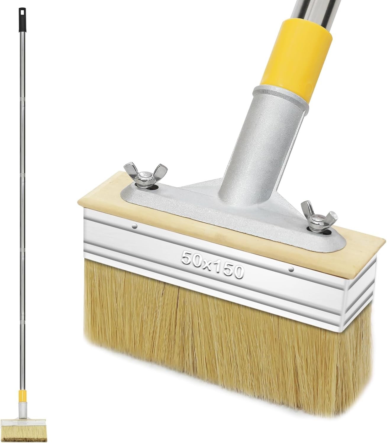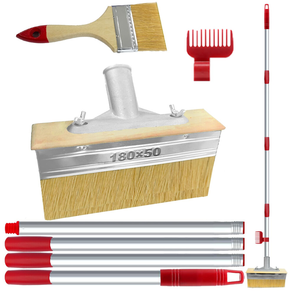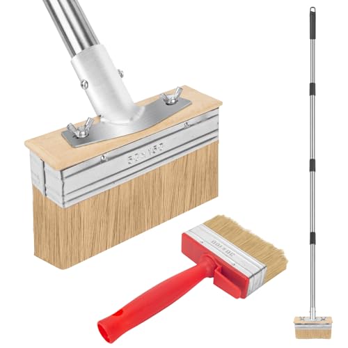 MOCOBO 6" Deck Stain Brush with 60" Long Handle, Natural Bristle Paint Brush Se