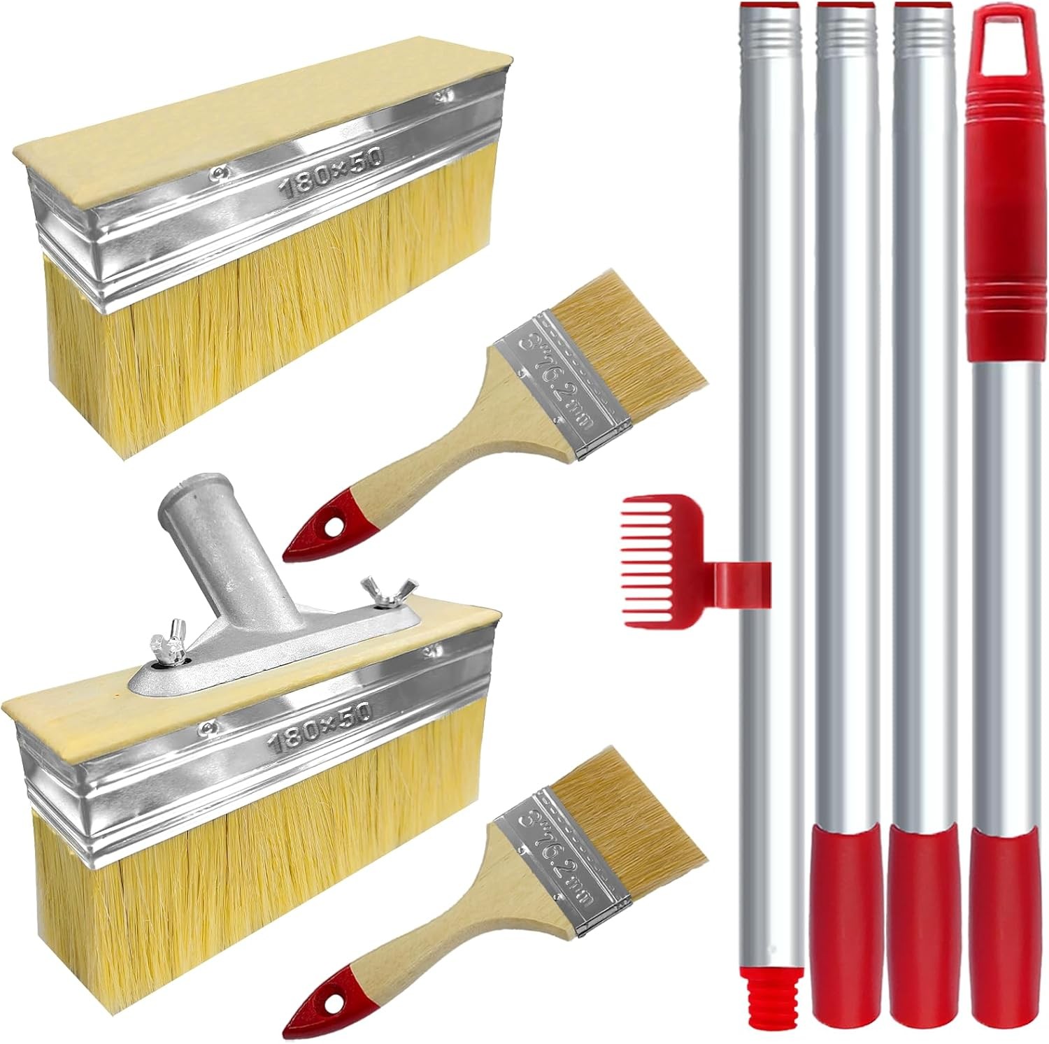 2 Pack Large Paint Brush 7"Decking Brush,Long Handled Paint 60"Deck Stain Applicator with 3" Paint Brush for Woodstains, Oils, Decking, Fence,Wall and Furniture