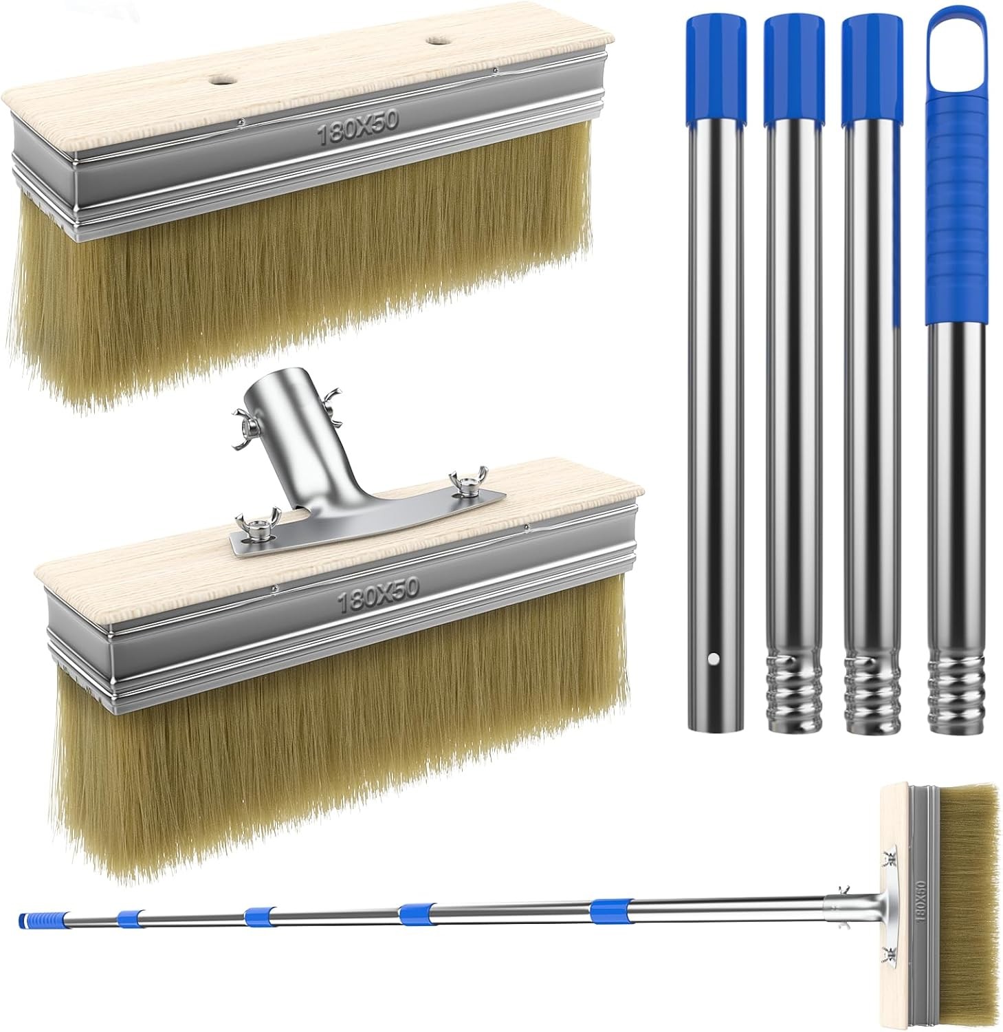 7" Decking Paint Brush Deck Stain Applicator with 60" Long Handle, 3" Paint Brush Included for Woodstains, Oils, Deck Coatings, Fence, Wall, Furniture(Blue)