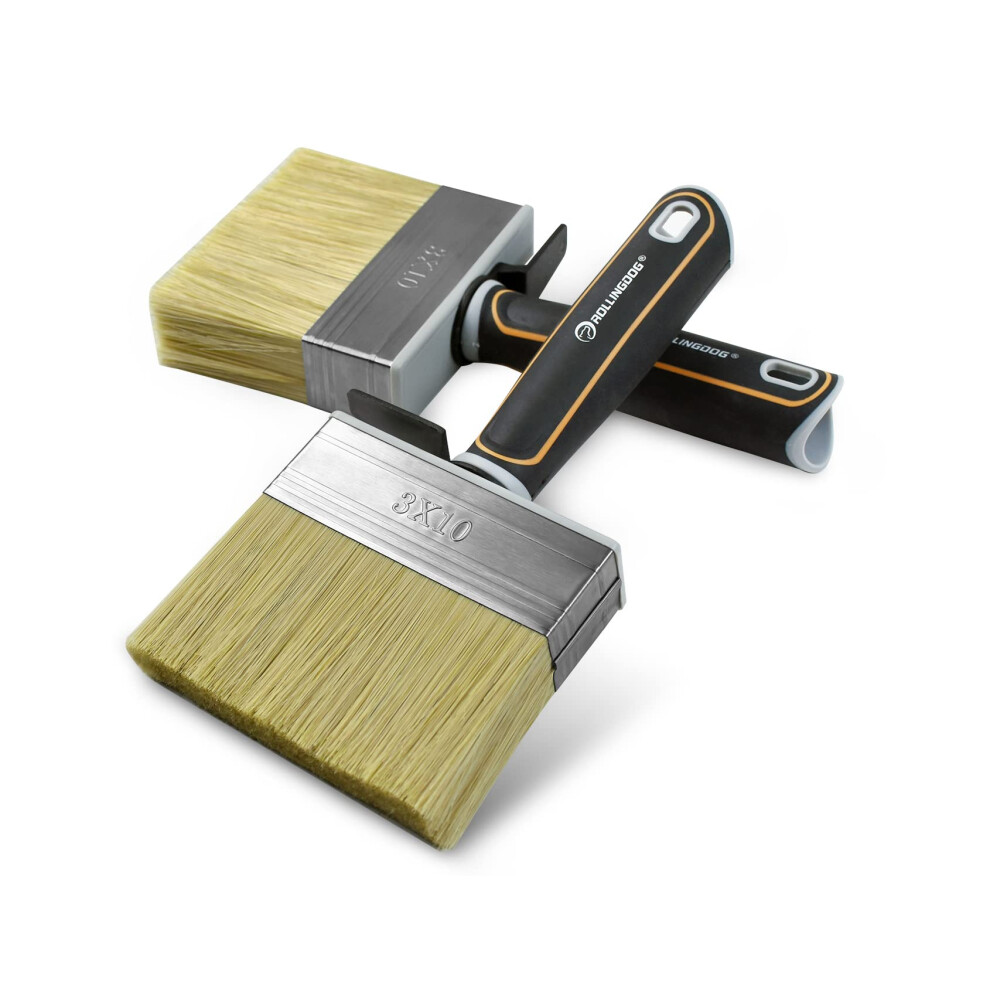 ROLLINGDOG Fence Block Paint Brush Set 4" 2 Pcs with Rubber Handle for Wall,Ceiling, Deck, Fence, Outdoor Painting, Shed