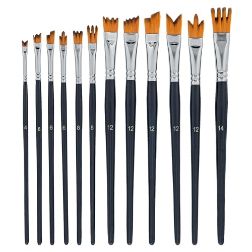 U.S. Art Supply 12 Piece Special Effects Artist Paint Brush Set - Professional Taklon Synthetic FX Brushes, Ribbon, Muti-Liner, Angular - Create Grass, Hair, Fur - Watercolor, Acrylic, Gouache, Oil