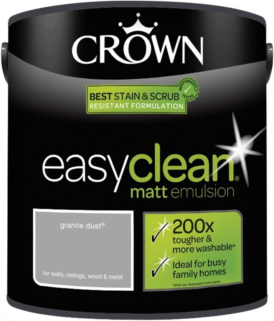 Crown Easyclean Paint - Granite Dust 2.5L - Washable Multi Surface Metal Walls