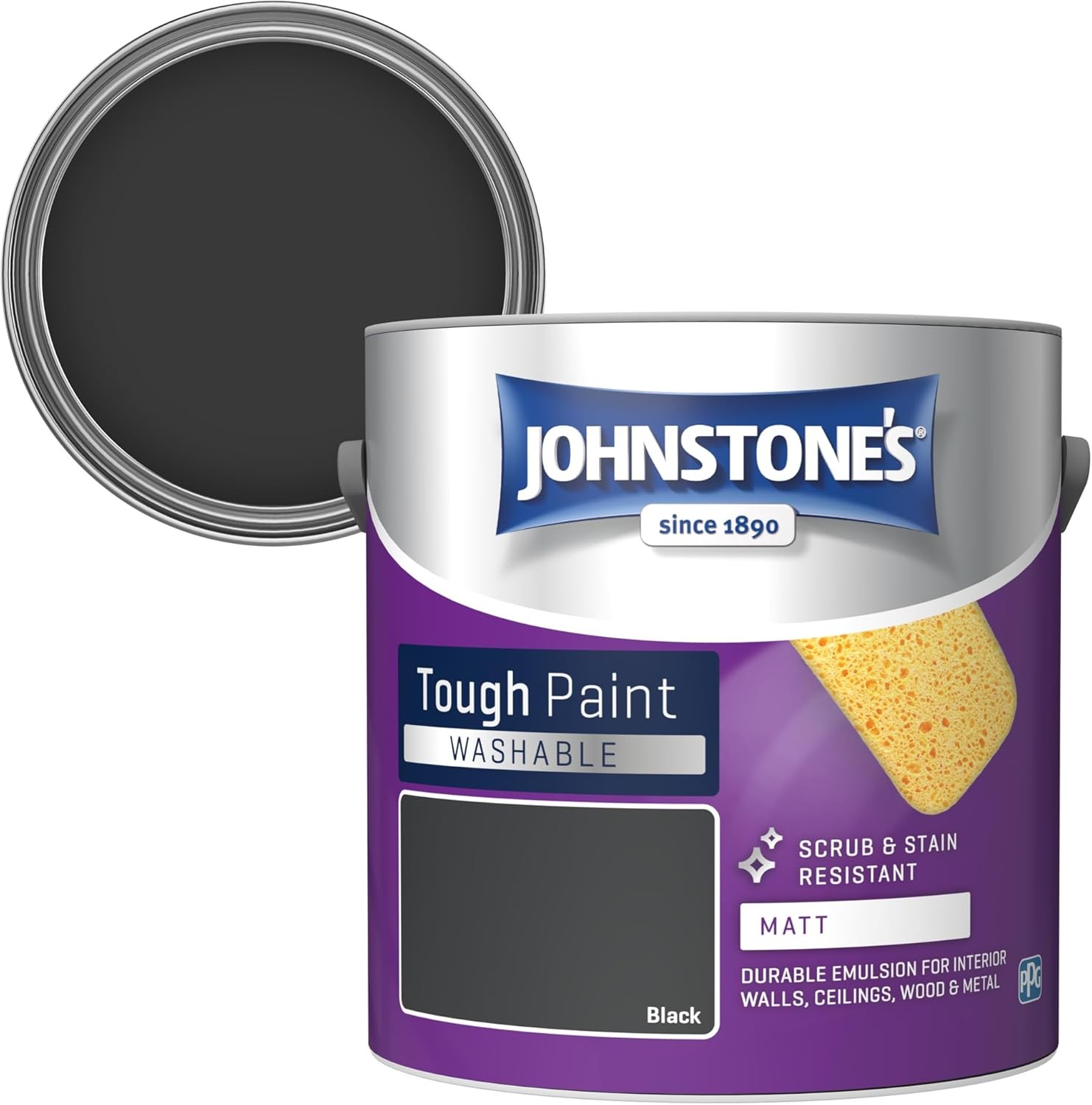 Johnstone's Washable Matt Emulsion Paint Black 2.5L for Interior Walls & Ceiling