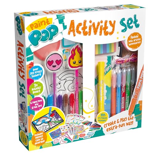 Paint Pop - Big Bumper Activity Set - 100 Children's Activities For Hours of Creative Fun & Play - Includes 200 Stickers, 3 Activity Books, 6 Paint Pens, 6 Felt Tip Pens, 2 Pencils, 4 Note Books, Case