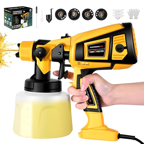 HYCHIKA Paint Sprayer for Walls and Ceilings, 600W HVLP Paint Spray Gun, 1200ML Tank 4 Nozzles and 2 Cleaning Tools, Easy to Clean, 3 Patterns Spray Paint Gun for Fences and Sheds, Furniture
