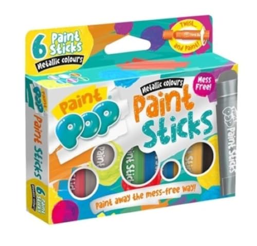 Paint Pop - Paint Sticks For Kids - 6 Pack Metallic Assorted Colours - Twist & Paint, Mess-Free, Fast Drying Action, Easy Clean Up, Vibrant Colours,