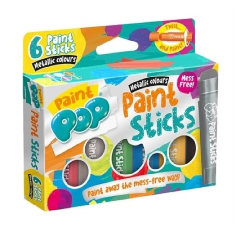 Paint Pop - Paint Sticks For Kids - 6 Pack Metallic Assorted Colours - Twist & Paint, Mess-Free, Fast Drying Action, Easy Clean Up, Vibrant Colours, Multi-Surface