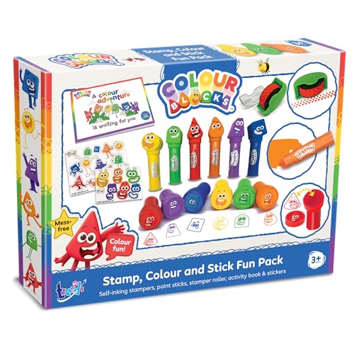 Colour Blocks - Stamp, Colour & Stick Fun Pack - Arts and Crafts for Kids with Self-Inking Stampers, Paint Sticks, Roller, Activity Book & Stickers - Complete Kids Craft Set for Creative Play