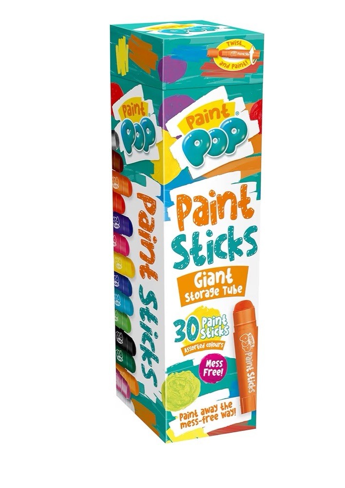 Paint Pop 30 Pack Assorted colours & giant Storage Tube - childrens Twist & Paint Mess-Free Paint Sticks - Features Fast Drying Action, Easy clean Up,