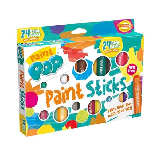 Paint Pop - Paint Sticks For Kids - 24 Pack Assorted Colours - Twist & Paint, Mess-Free, Fast Drying Action, Easy Clean Up, Vibrant Colours, Multi-Surface