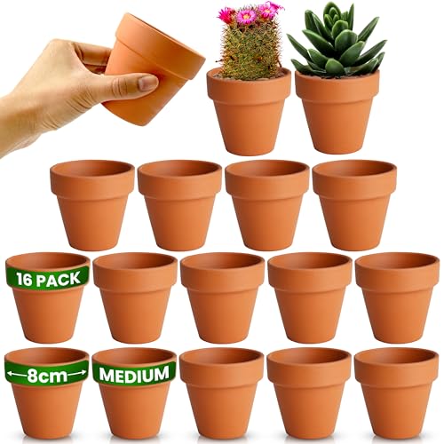 Green Thumbz Terracotta Plant Pots - 8cm x 16 Pack Small Plant Pots - Multi Purpose Mini Terracotta Pots for Plants, Flowers, Candle Making, and Painted Art