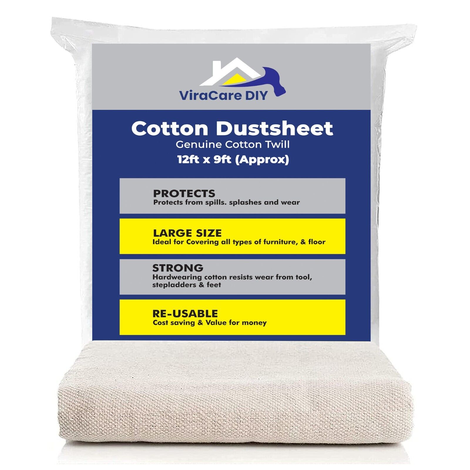 Cotton Dust Sheets 12'x9' (3.6Mx2.7M) for Painting & Decorating | Paint Sheets |