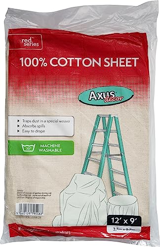 Axus Decor 100% Cotton Dust Sheet (Red Series) for Decorating & Painting Paint Sheets - Highly Absorbent, Machine Washable & Reusable - For Furniture & Floor, 12' x 9' (3.67m x 2.76m)