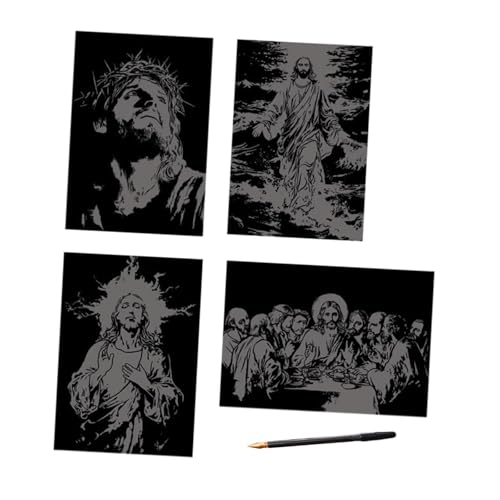 4 X Scratch Paper with Pen, Craft Project Set for, Scratch Painting Paper Pads for Games, Classrooms, Birthday Parties